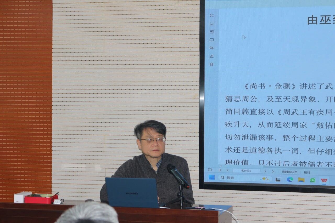 历史学院杜勇教授梳理了《尚书》学的研究历程并展望其未来的发展趋势。梁涛教授通过对《金縢》篇周公代祷的全新解读,认为周公形象完成了从巫术权威到道德圣贤的转化。蒋鲁敬先生则讨论了新见楚简《吕刑》的异文与文献价值。