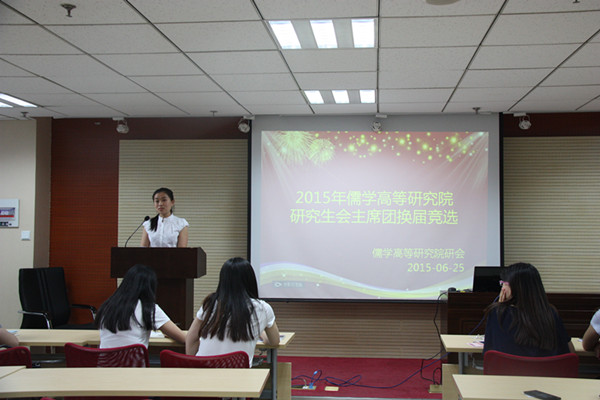 研究生会在中心校区召开2015 年主席团换届大会。此次换届将评选出新一届主席团成员,包含主席、常务副主席、秘书长、副主席等五个职位。本次会议由现任研究生会主席马晓潇主持,成人论坛