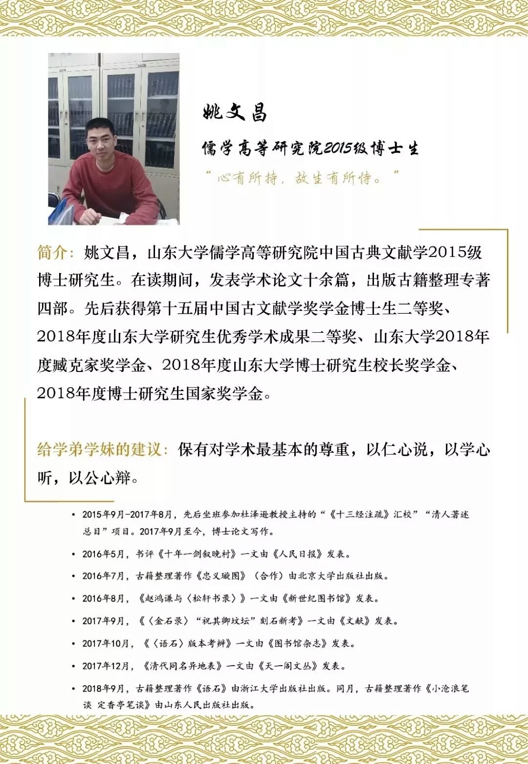 2015级中国古典文献学专业博士研究生:姚文昌。