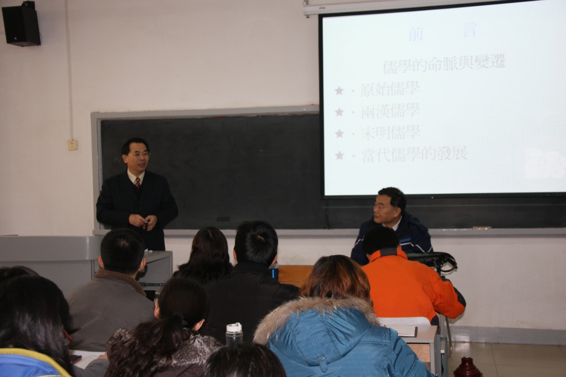 2009年11月30日上午,台湾云林科技大学汉学资料整理研究所所长、社会资源发展委员会执行长吴进安教授应我院邀请在文史楼336教室作了一场精彩的学术报告。报告会由文史哲研究院古典文献研究所所长、博士生导师郑杰文教授主持。