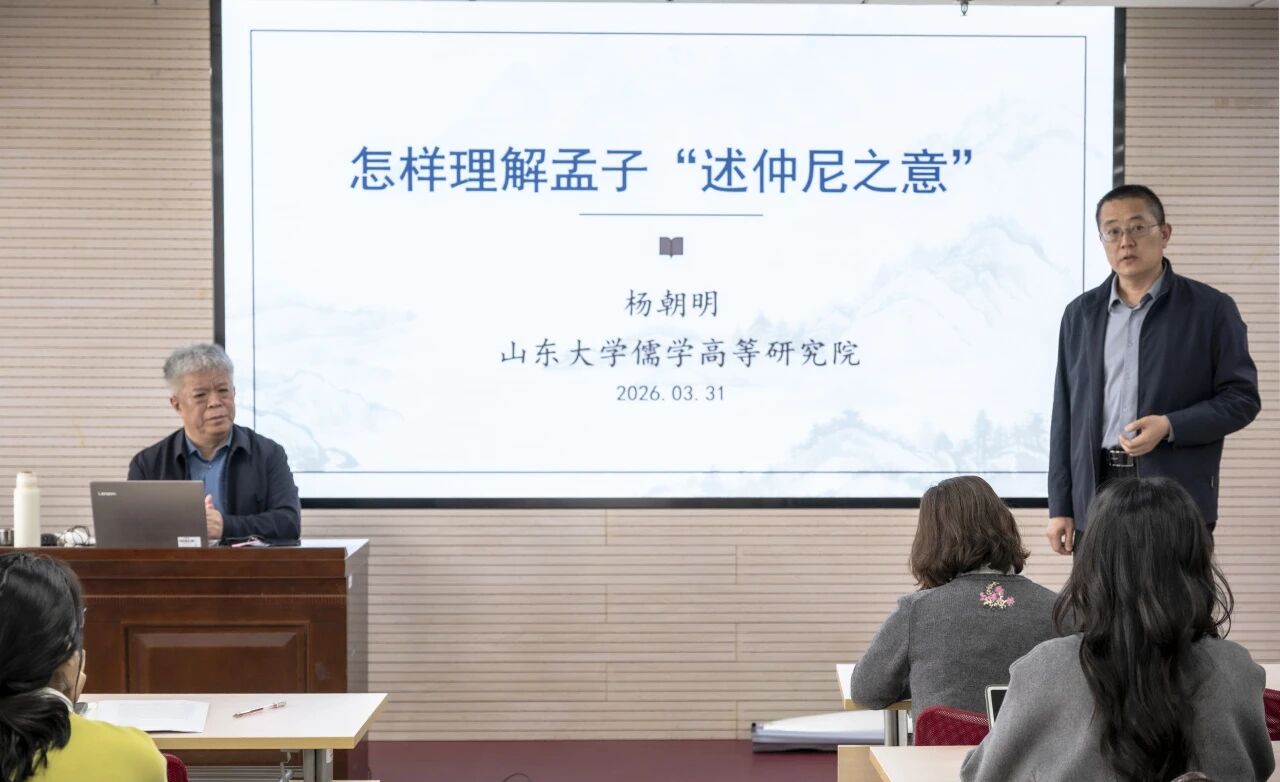 特聘教授、第十四届全国人大代表杨朝明教授作“怎样理解孟子‘述仲尼之意’”学术讲座。讲座由成人论坛