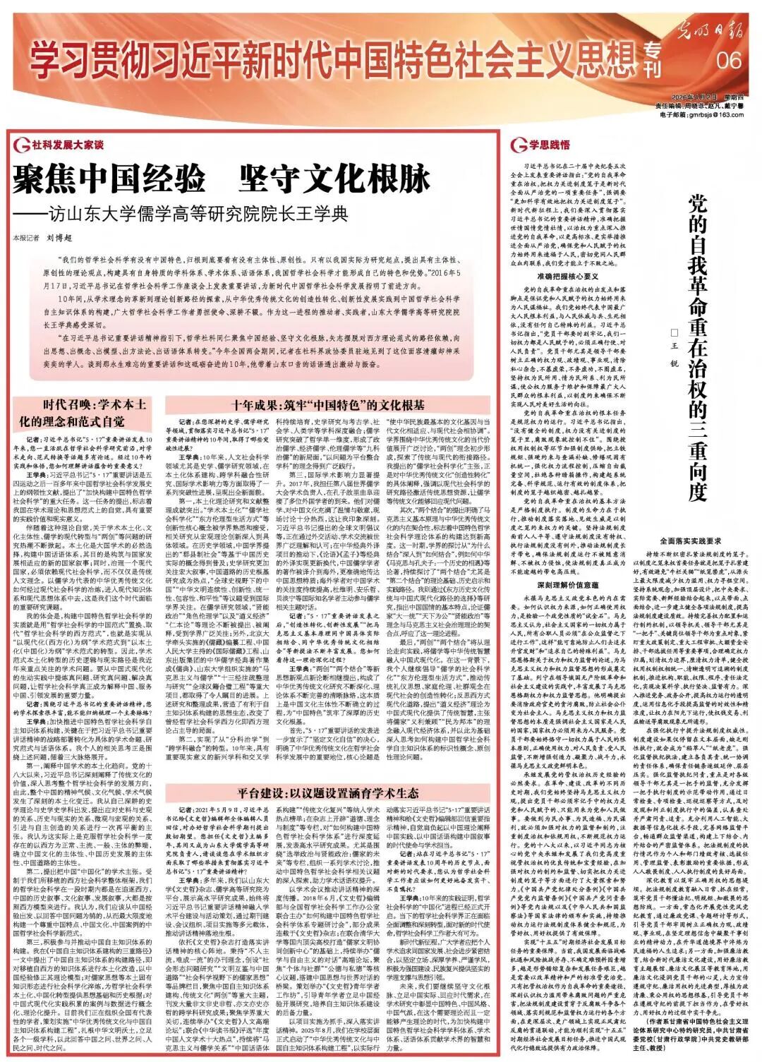 王学典:“两创”“两个结合”等新思想新观点新论断相继提出,构成了中华优秀传统文化研究不断深化、理论体系不断完善的清晰脉络,这本质上是中国文化主体性不断确立的过程,为“中国特色”筑牢了深厚的历史文化根基。