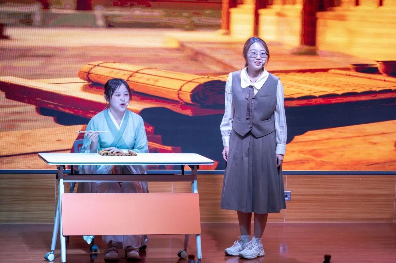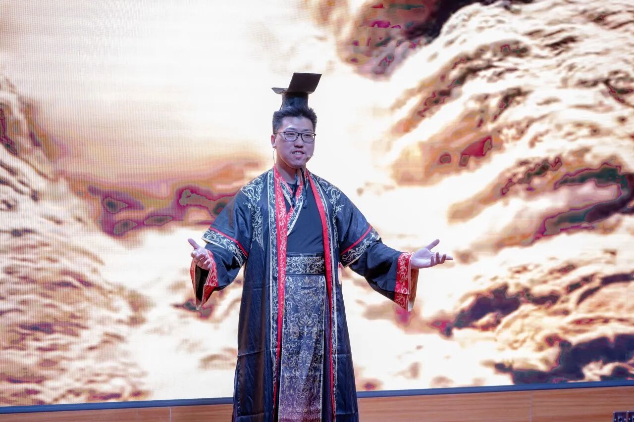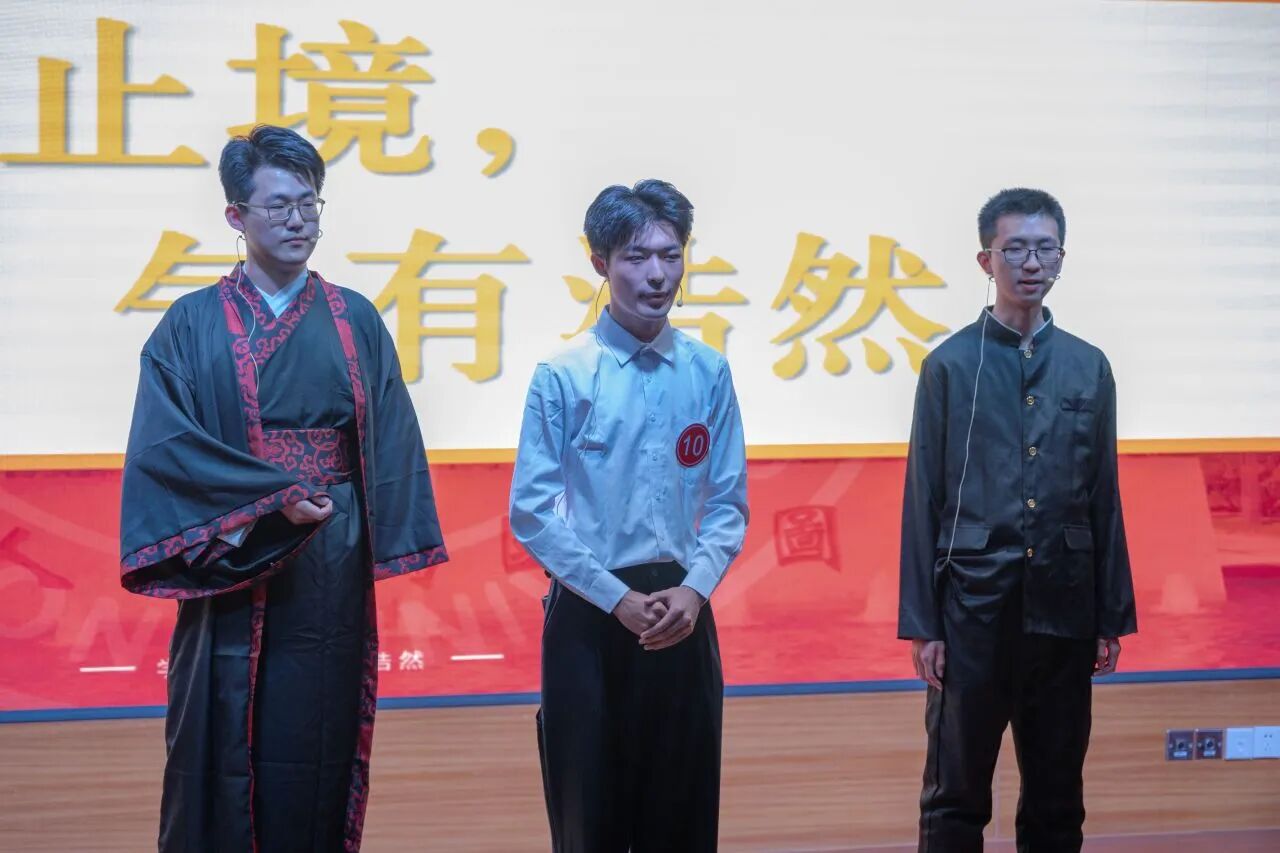 决赛现场气氛热烈,青年选手们各展所长,通过情景短剧、相声演绎、摇滚吟唱、跨时空对话等多样化形式,为观众带来精彩纷呈的《孟子》文化盛宴。整场展演立足经典章句,生动展现了“民贵君轻”的民本思想、“浩然之气”的人格追求与“舍生取义”的价值坚守。节目将孟学智慧与校园生活、青年成长、航天梦想、乡村振兴、绿色环保等时代主题有机融合,以青春话语诠释典籍内涵,充分彰显了当代青年学子坚定的文化自信与昂扬向上的精神风貌。